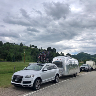 Mark and Suzie join us for this leg of the trip. We stop along the way for Mari to make an important call. It’s one of The oldest towns In Wyoming and while Mari is in the trailer working, Datta tries to gently tow the trailer with her in it to a couple of nearby spots at the end of the block to take some cool phots. Doesn’t go over well.... Mark and Suzie go ahead while we stay back so Mari can finish her work in a state with Datta apologizing profusely.